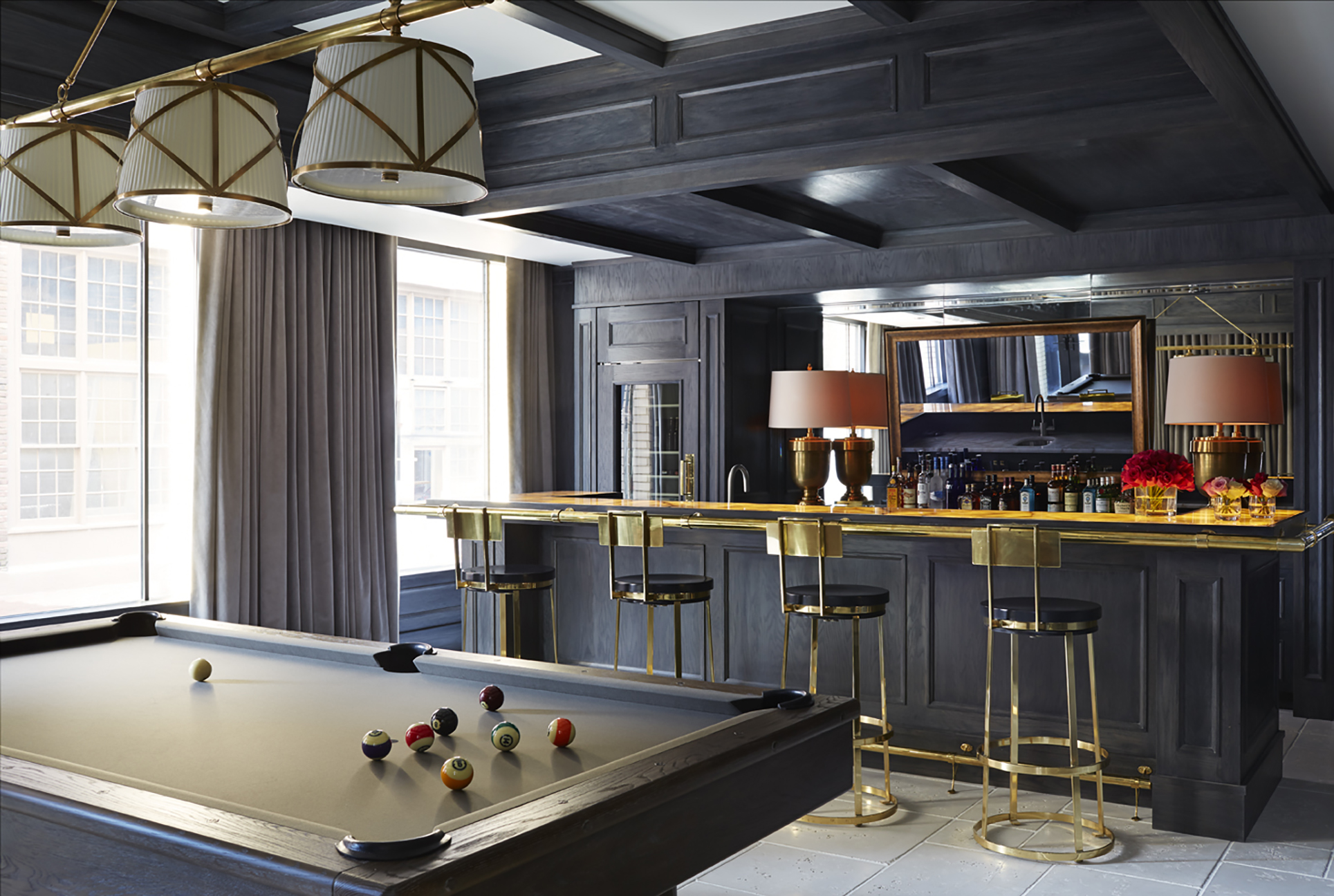 Interior designer Melanie Turner was presented with a challenge: take a modern, four-story townhouse steps from the Central Business District of New Orleans and infuse it with more classic sensibilities. On top of that, the home needed to be houseguest- and party-ready. Turner met the challenge by helping her client realize a dream—to create an ultimate getaway for his parents, where they could entertain family and friends in the bustle of the city during Mardi Gras and other occasions. “It’s rather like a grown-up fraternity house for seniors,” quips Turner. “There’s a bar on every floor, glass doors at street level that open up completely for parade time, a rooftop pool and lounge space, and a billiards room.” Turner brought in a gentle palette of blue, sage green and lavender—grounded with ivories—to impart a soft attitude throughout the floors, which are joined by a contemporary glass stairwell. Antique pieces imbue warmth into spaces that might otherwise feel cold; the composition under the stairs on the first floor, for example, includes a trestle table, gilt mirror, balustrade-style lamps and footed chest topped with books. “As most homes in New Orleans have antiques, it was natural to include them, even in this setting,” says Turner. The designer also introduced classic pieces that have a modern edge, such as a klismos chair and Saladino sofa. The decorative accents are spare, which is intentional. “I like second homes to be calm, not cluttered, so I use minimal but meaningful accessories. I want our clients to put their bags down and start relaxing immediately.”